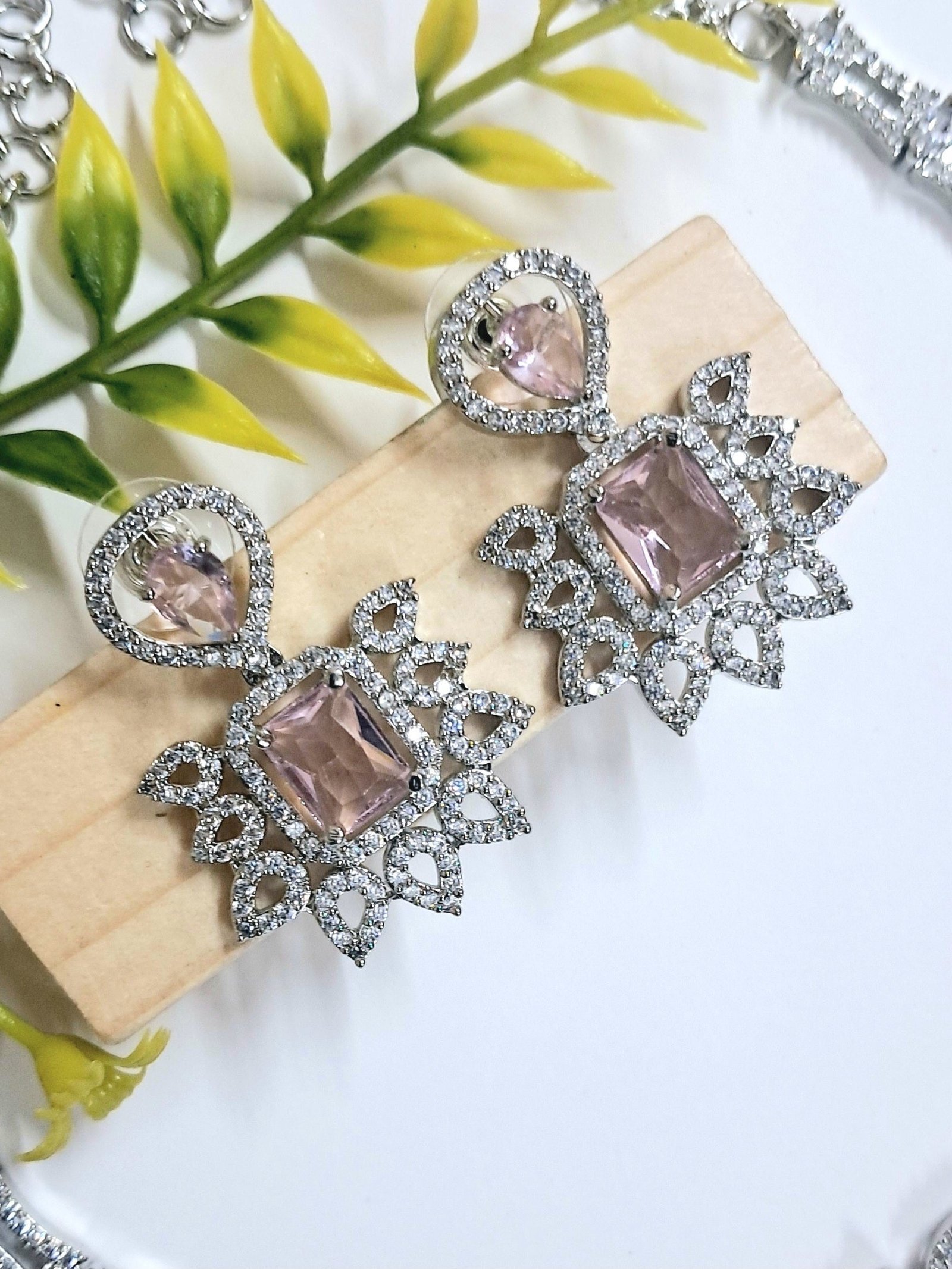 Silver Plated American Diamond Necklace Sets Aqua Pink